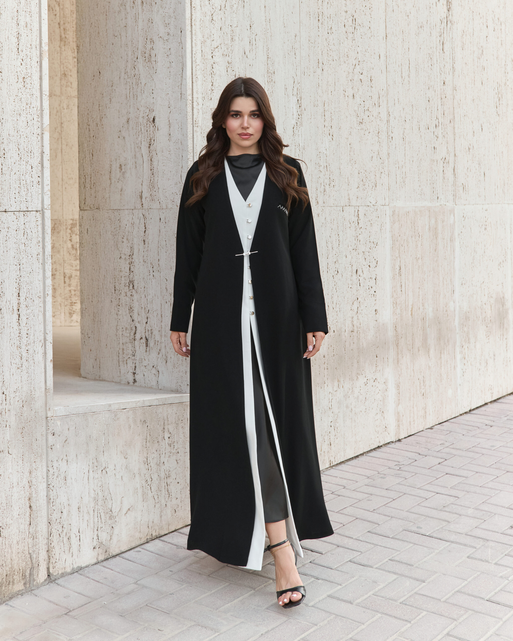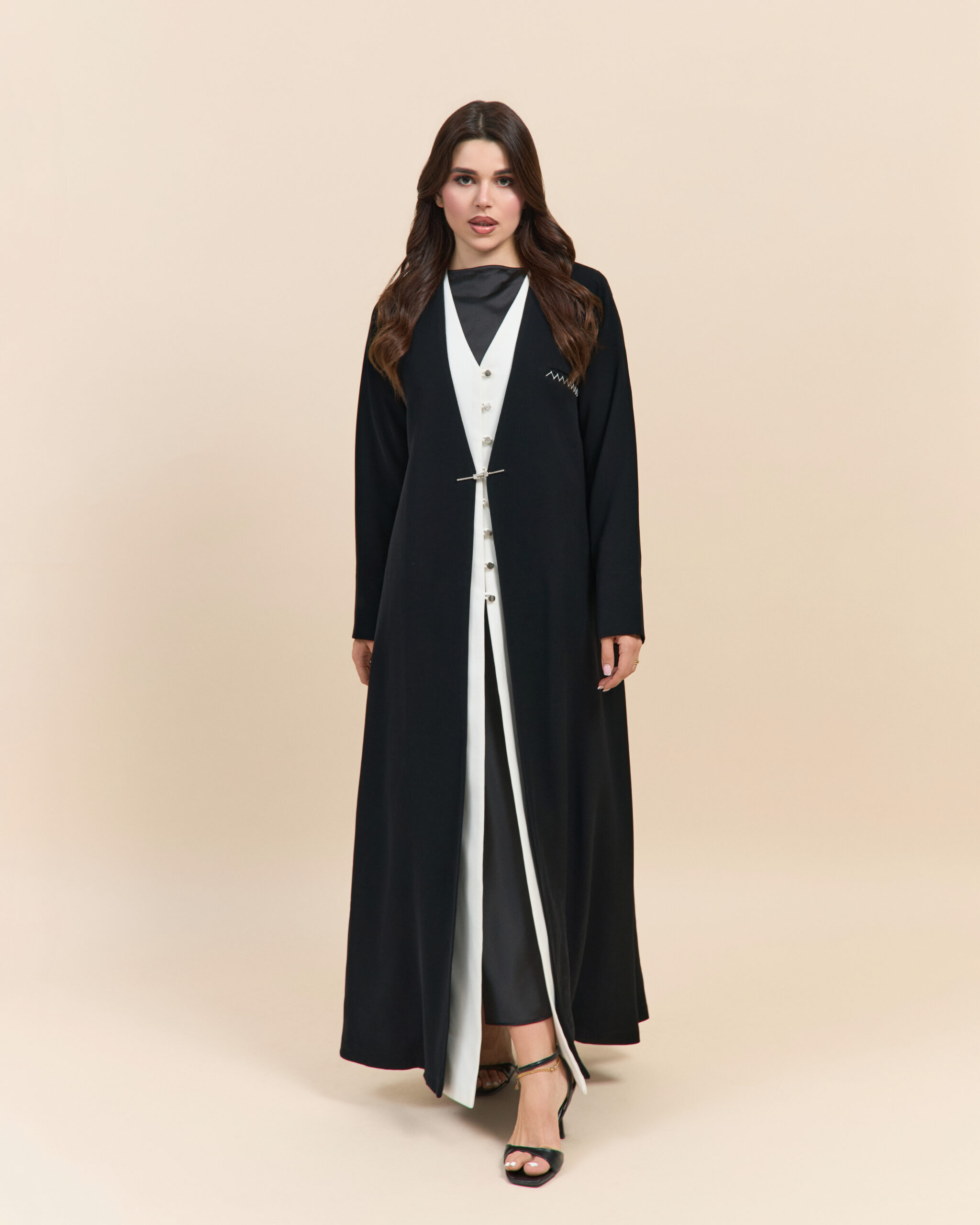 القماش: كريب فاخر باللونين الأسود والأبيض