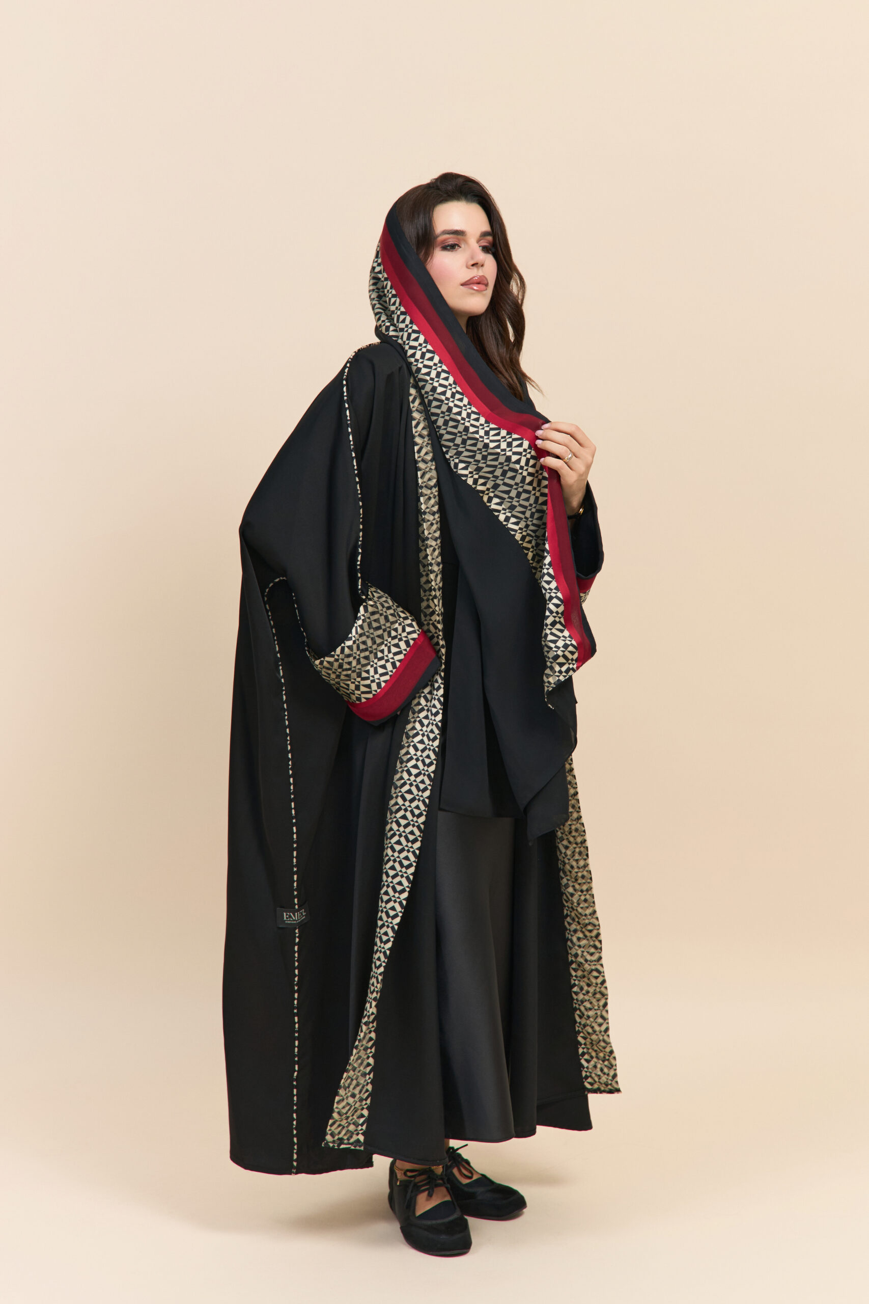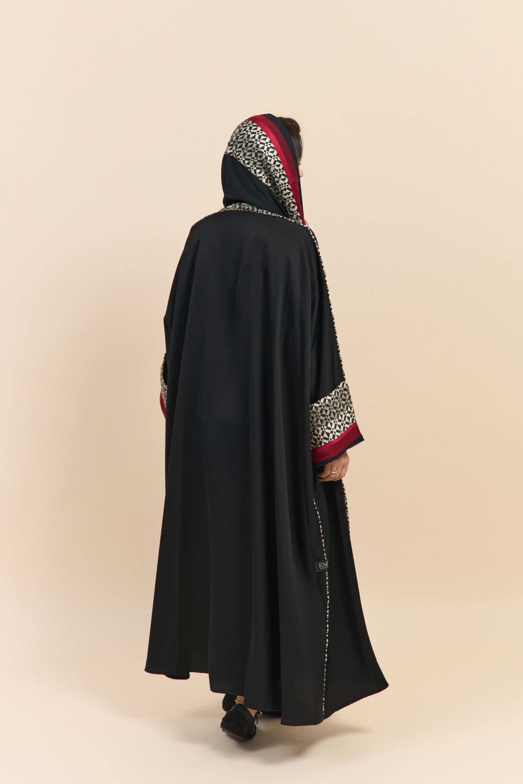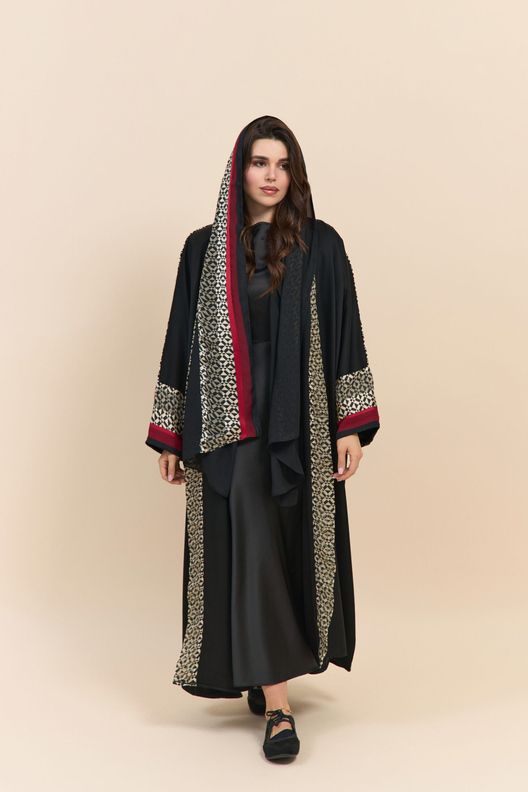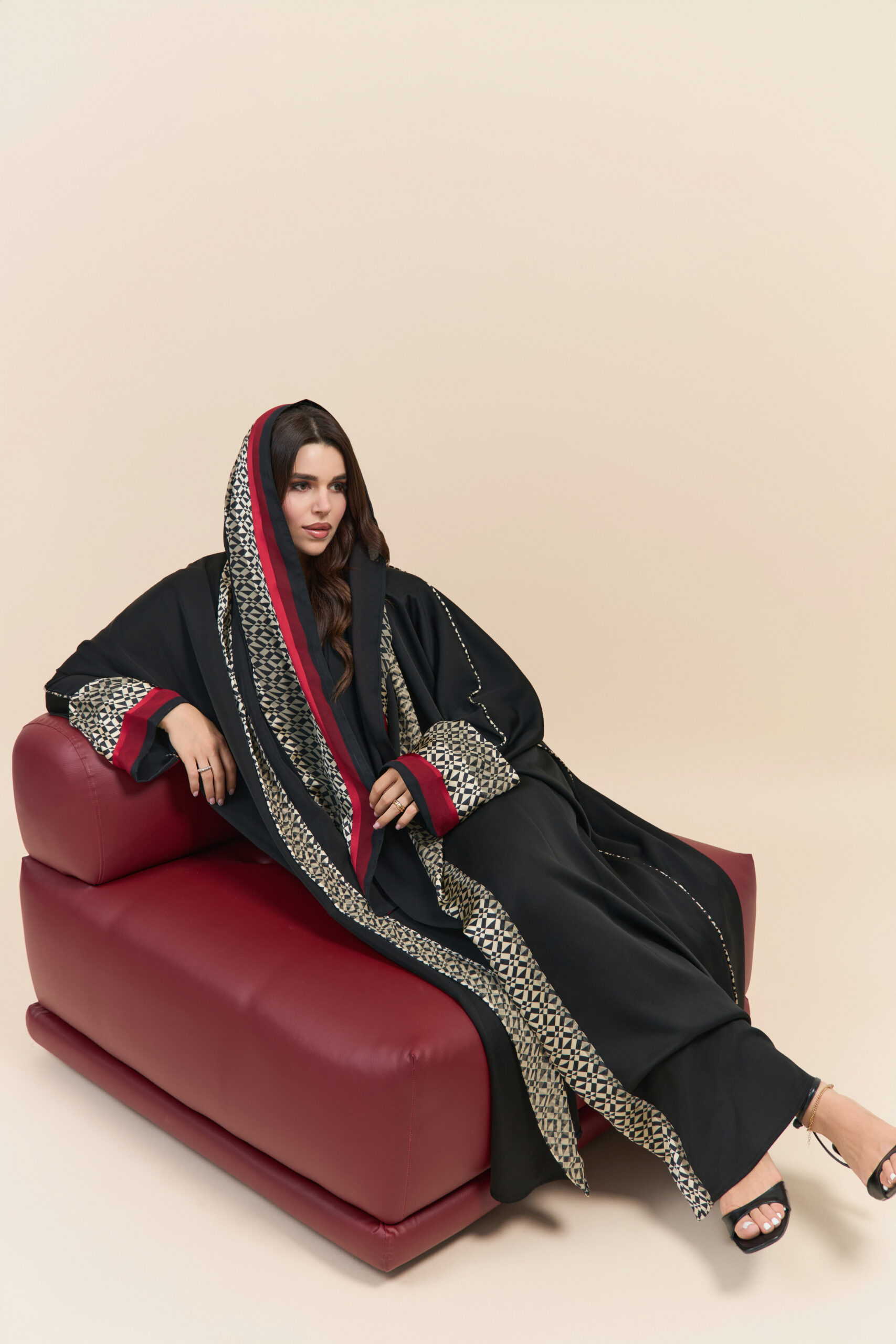 التفاصيل: تطريز حصري من تصميم الدار، منسّق بحدود عميقة باللون العنّابي.